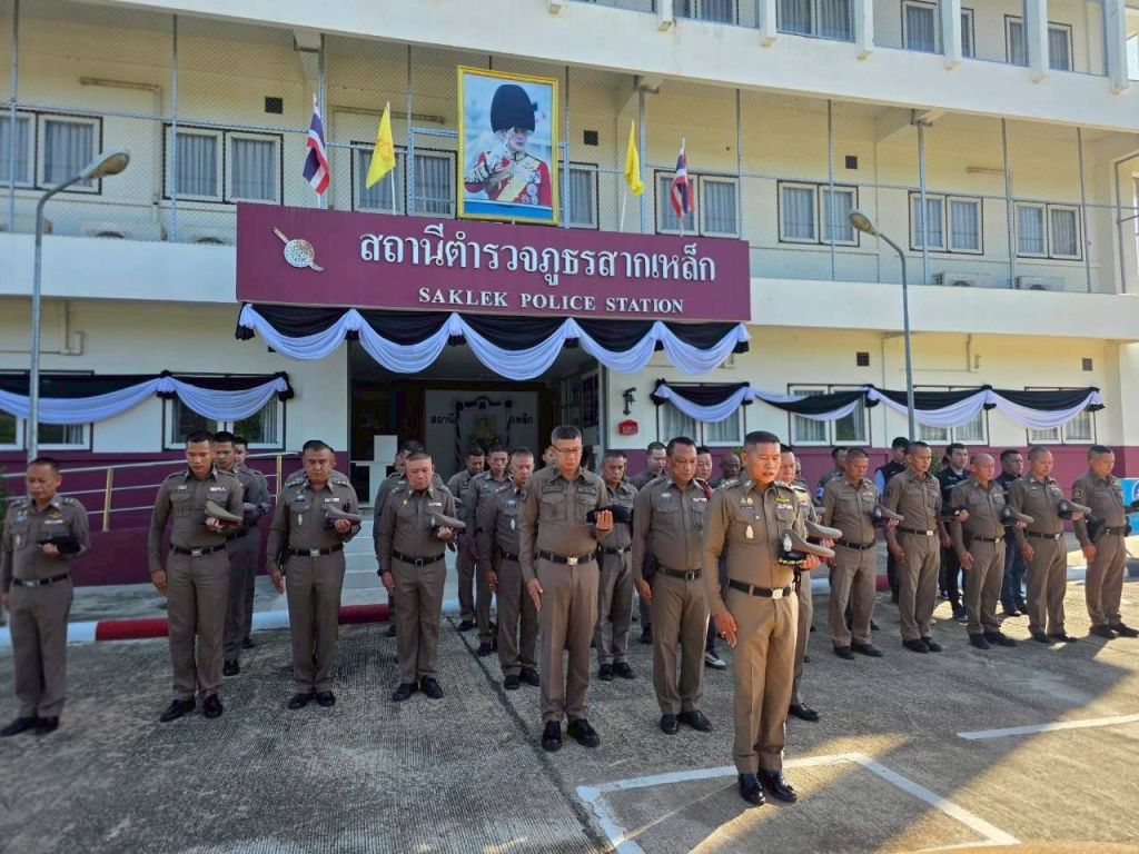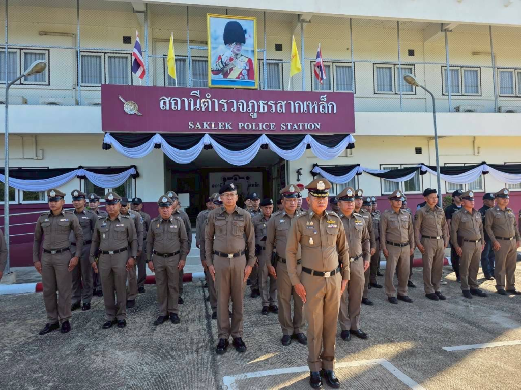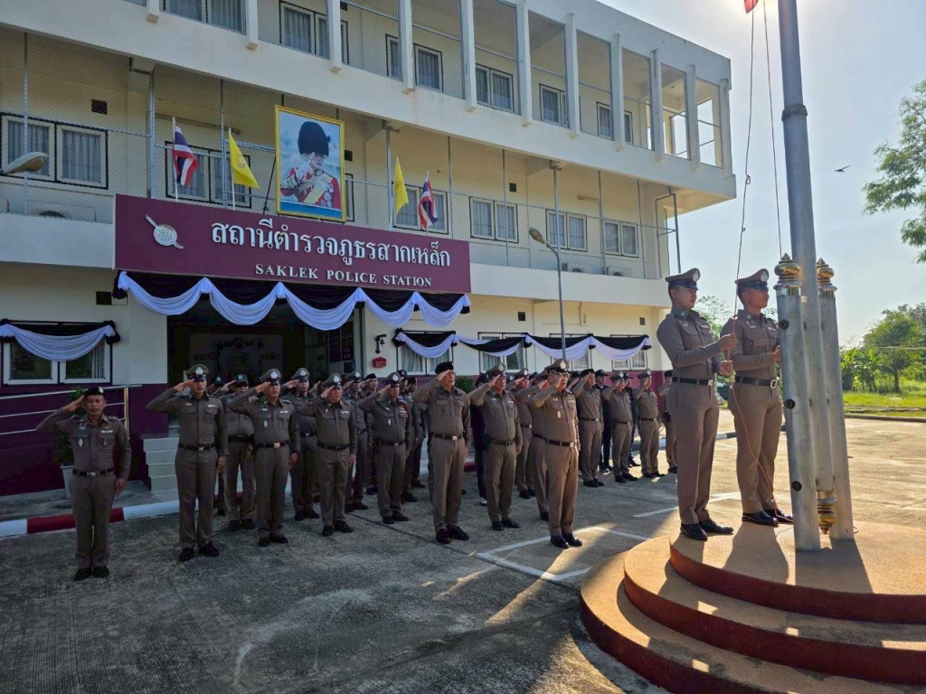 ข้าราชการตำรวจในสังกัด ร่วมกันเคารพธงชาติ ยืนสงบนิ่งน้อมถวายความอาลัย สมเด็จพระนางเจ้าสิริกิติ์ พระบรมราชินีนาถ พระบรมราชนนีพันปีหลวงฯ