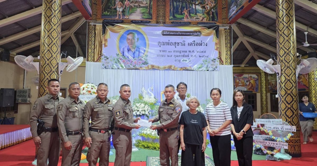 ข้าราชการตำรวจ สภ.สากเหล็ก ร่วมเป็นเจ้าภาพสวดพระอภิธรรมศพ คุณพ่อ สุชาติ เครือม่วง บิดาของ ร.ต.อ.วุฒิชัย เครือม่วง รองสวป. สภ.สากเหล็ก