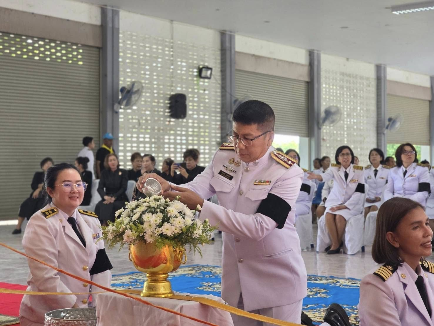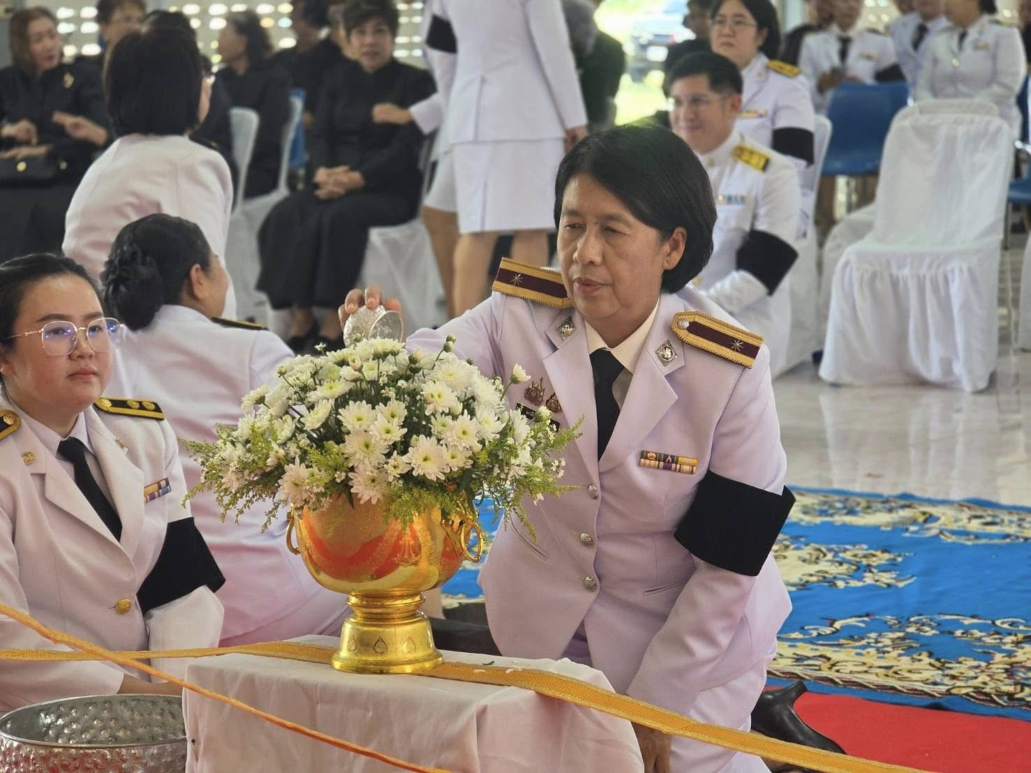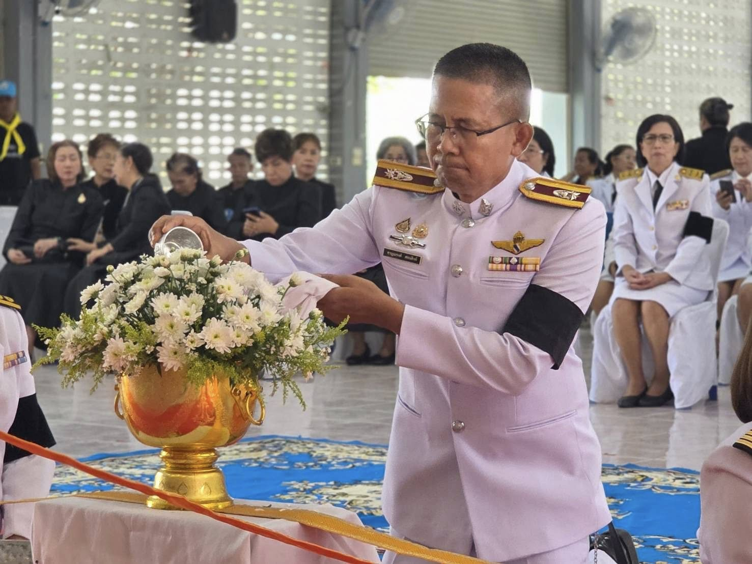 ข้าราชการตำรวจ สภ.สากเหล็ก เข้าร่วมพิธีสรงน้ำพระบรมศพ เบื้องหน้าพระฉายาลักษณ์ สมเด็จพระนางเจ้าสิริกิติ์ พระบรมราชินีนาถ พระบรมราชชนนีพันปีหลวง