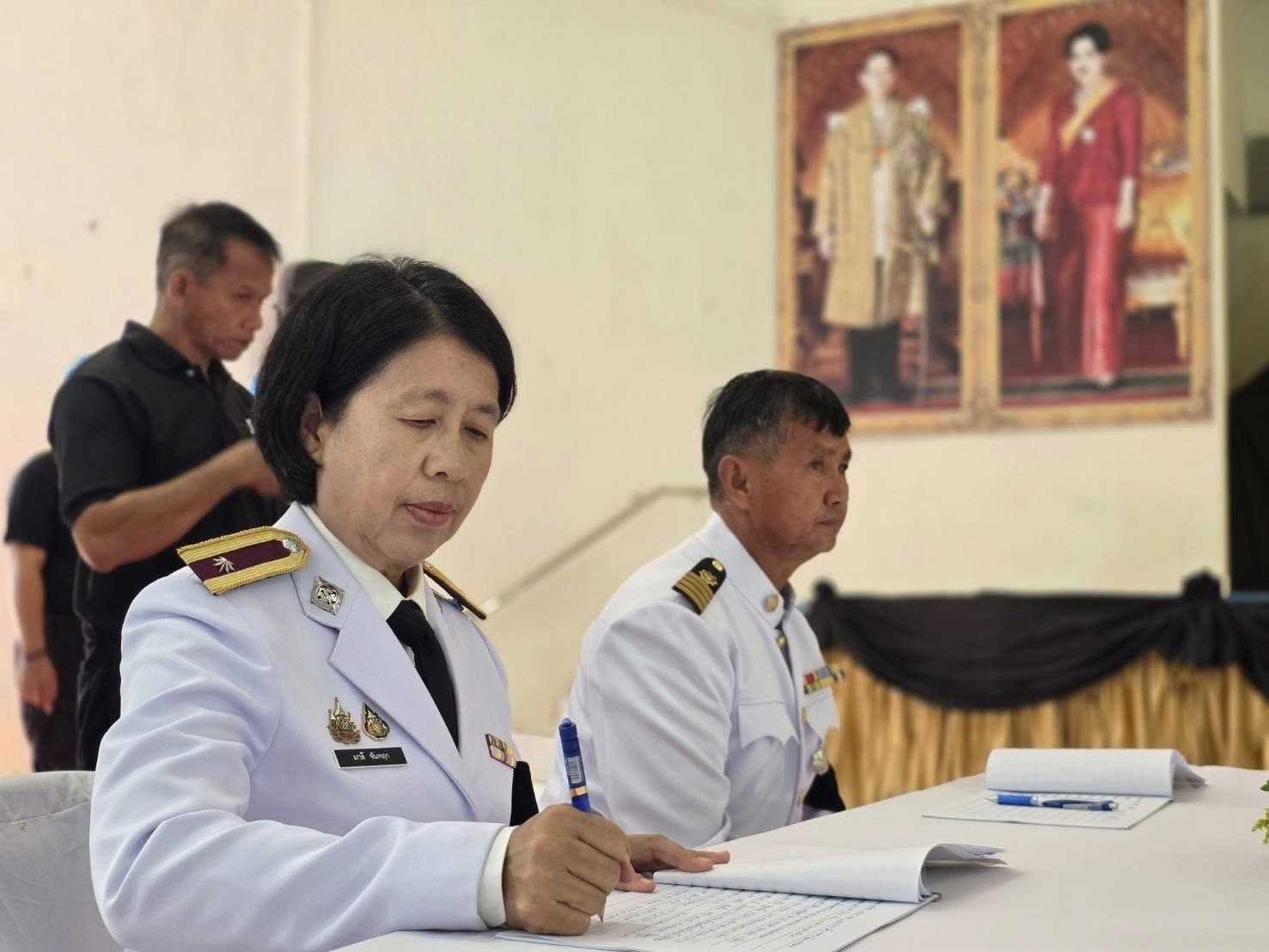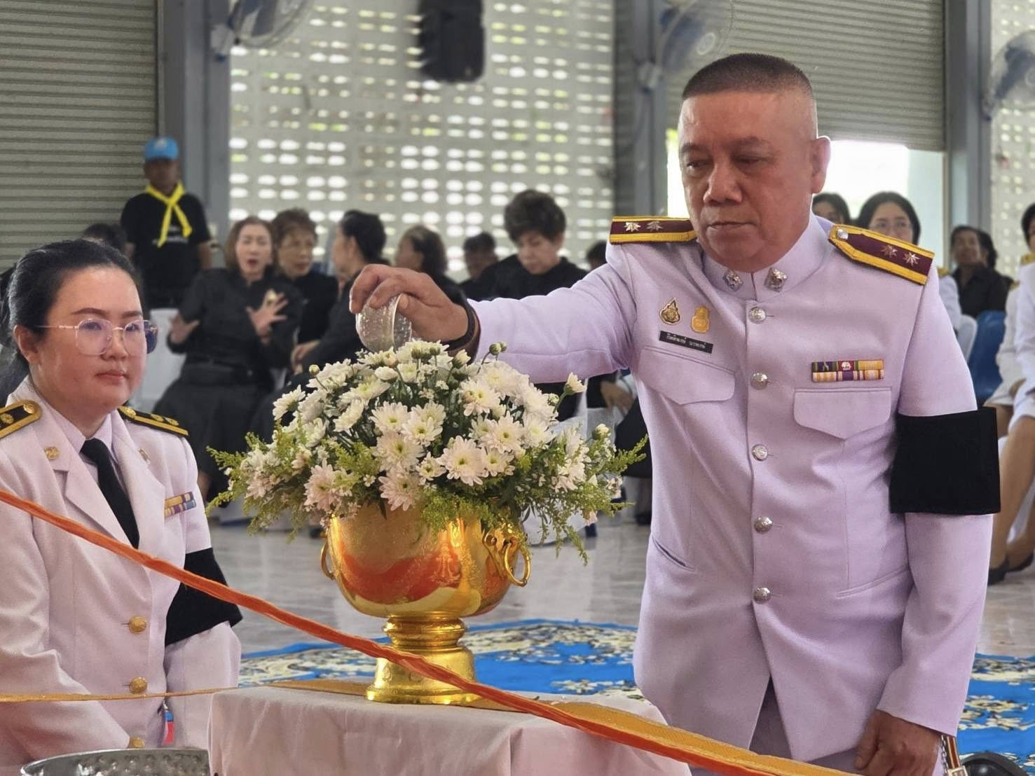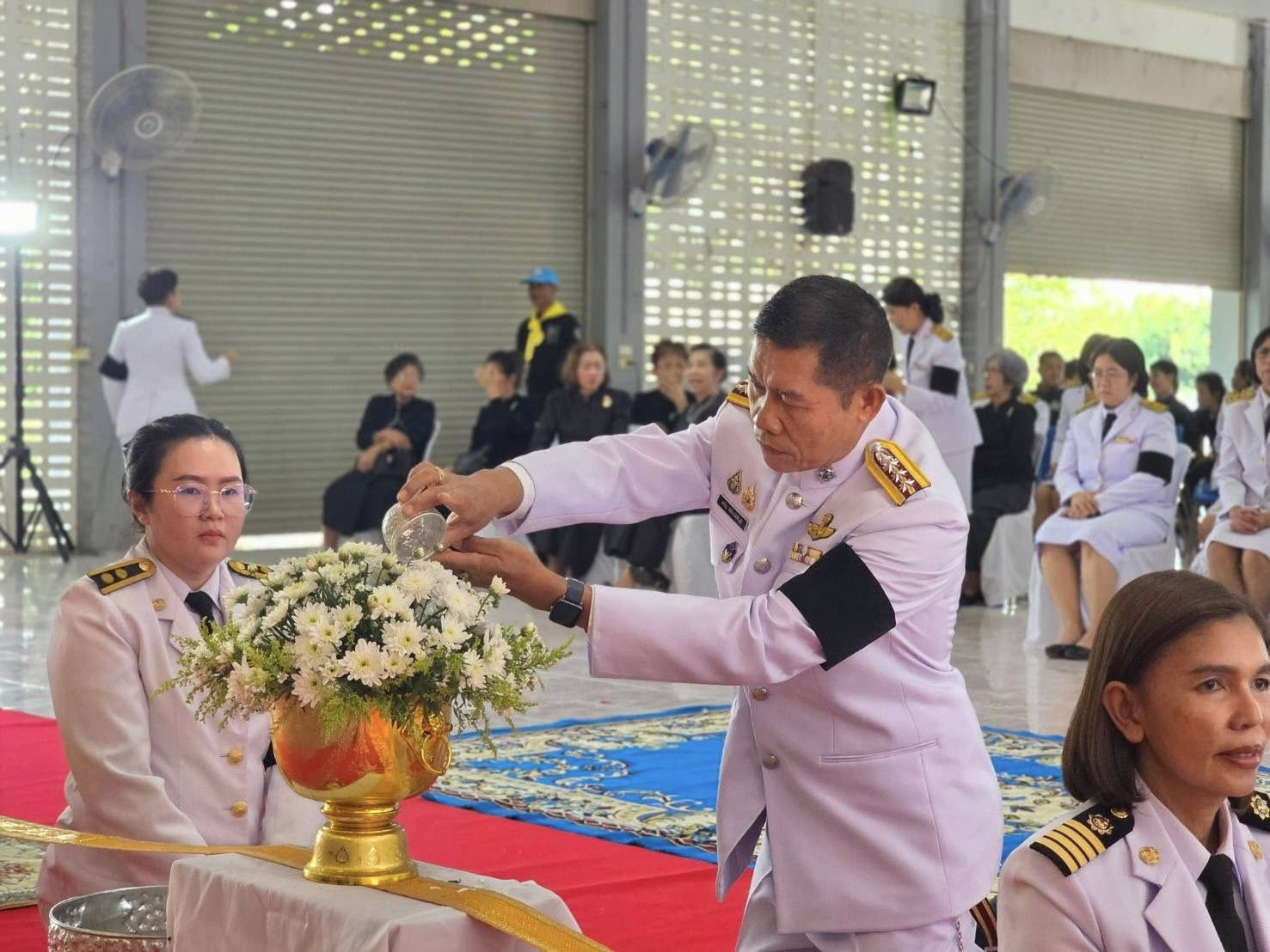 ข้าราชการตำรวจ สภ.สากเหล็ก เข้าร่วมพิธีสรงน้ำพระบรมศพ เบื้องหน้าพระฉายาลักษณ์ สมเด็จพระนางเจ้าสิริกิติ์ พระบรมราชินีนาถ พระบรมราชชนนีพันปีหลวง