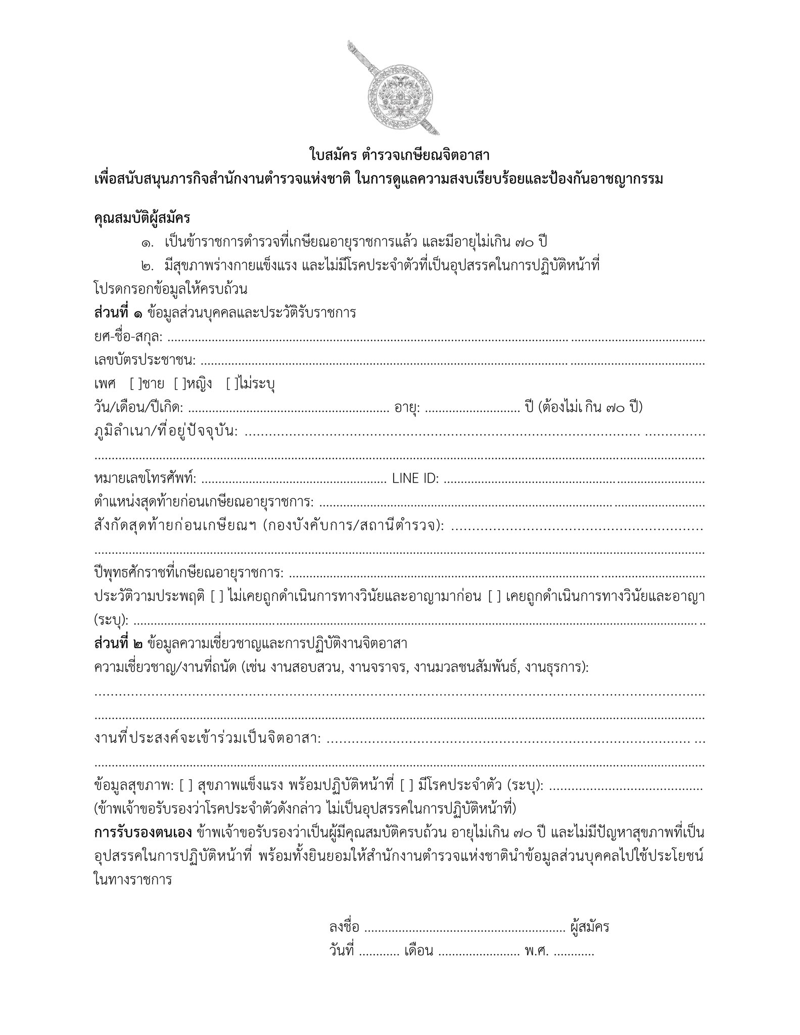 สภ.สากเหล็ก เปิดรับสมัคร ตำรวจเกษียณจิตอาสา 5 กุมภาพันธ์ 2569 โดย admin / ข่าวประชาสัมพันธ์,ข่าวประชาสัมพันธ์,ข่าวฝากประชาสัมพันธ์ สถานีตำรวจภูธรสากเหล็ก เปิดรับสมัคร “ตำรวจเกษียณจิตอาสา” รายละเอียดตามรูปภาพที่แนบมาครับ สามารถดาวน์โหลดใบสมัครได้ที่ https://url.in.th/hpTau FacebookFacebookXXLINELine