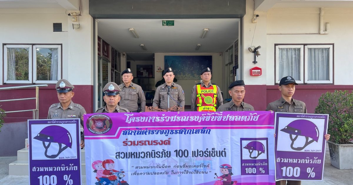 สภ.สากเหล็ก,อาสากู้ภัยสากเหล็กและประชาชนในพื้นที่ ร่วมเปิดโครงการรณรงค์ขับขี่ปลอดภัย สวมหมวกนิรภัย 100% ตามนโยบายของผู้บังคับบัญชา