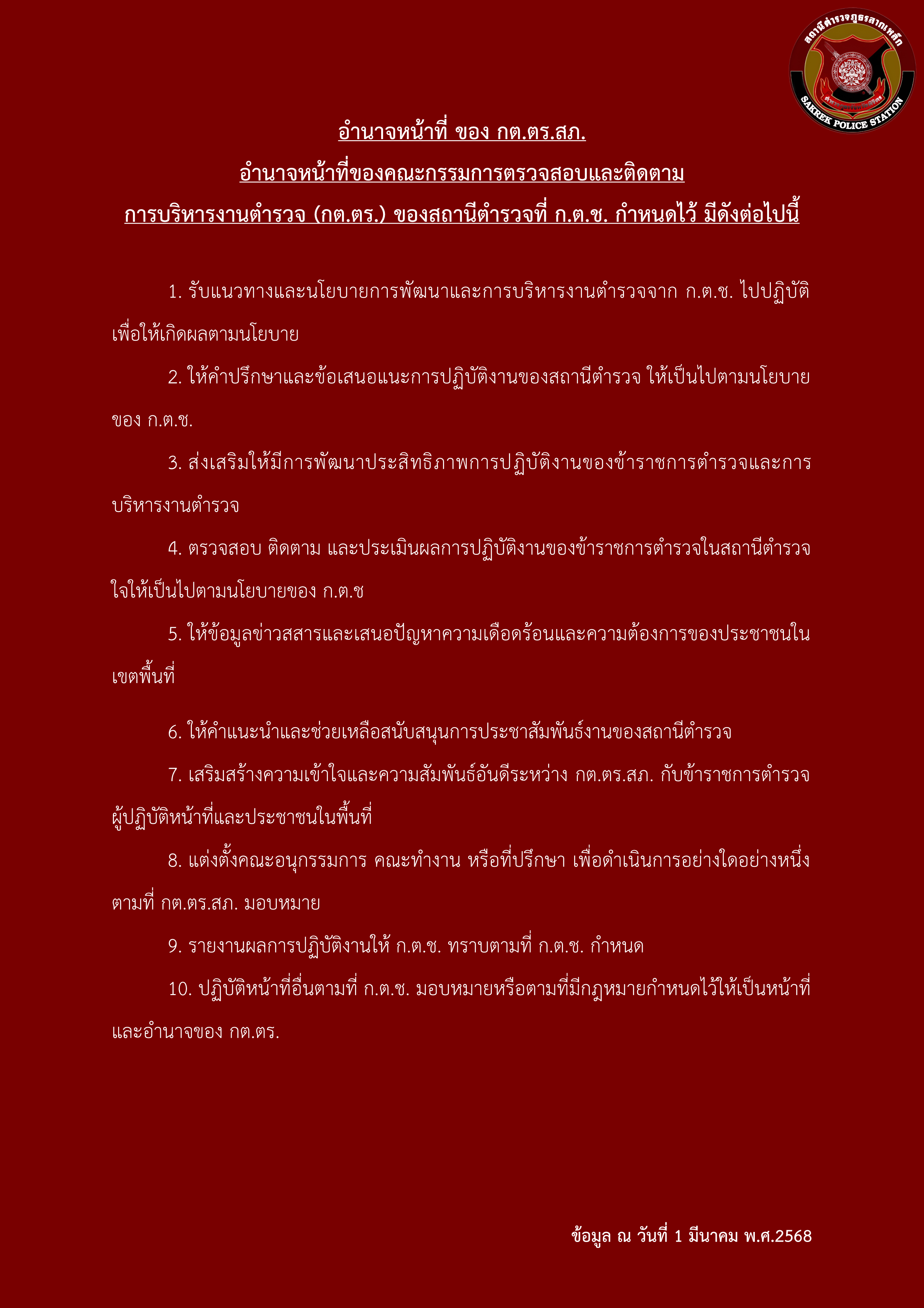 O4 – ข้อมูลคณะกรรมการตรวจสอบและติดตามการบริหารงานตำรวจ (กต.ตร.) ของสถานีตำรวจ